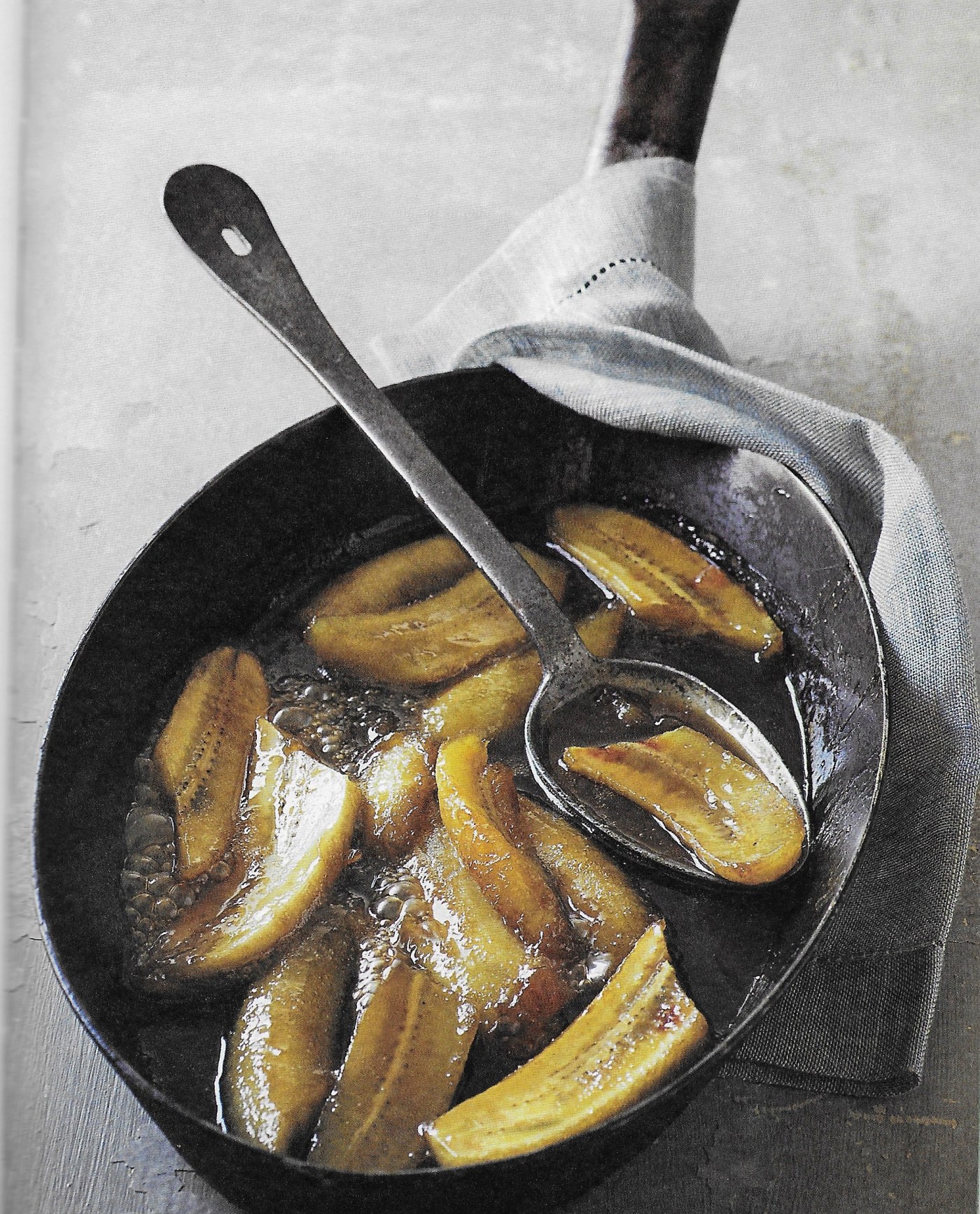 - Add the banana liqueur and the bananas. Cook slowly until the fruit has started to colour up and soften slightly.