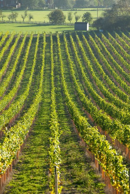 There has been an explosion in the production of English wine led by producer Nyetimber some 25 years ago. The limestone chalky soils of Sussex, Kent and other portions of southern England are suitable for growing the grapes used to produce sparkling wine, and particularly on south-facing slopes, the climate, at least in recent years, is warm enough. At the last official count, the Wine Standards Board reported that there were just over 450 vineyards producing wine throughout England. The largest of these is Denbies Vineyard in Surrey which, as of mid-2007, has 265 acres (1.07 km2) of vines, although Chapel Down Wines near Tenterden in Kent, has the biggest winery and produces more wine.